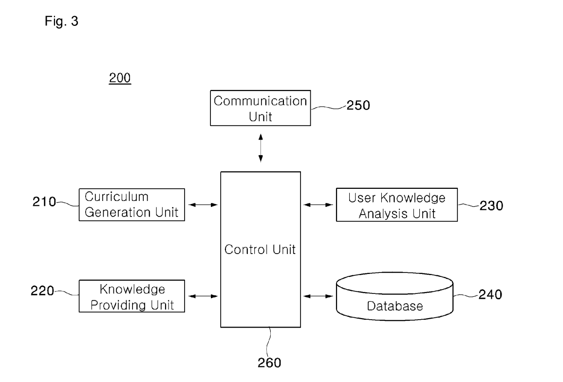 Claim 1 concerns a system for providing education service based on knowledge units. First, a curriculum is generated based on a user’s achievement for at least one knowledge unit, said curriculum including at least one problem composed based on said at least one knowledge unit. According to the present invention, a new form of education service can be provided based on knowledge units.