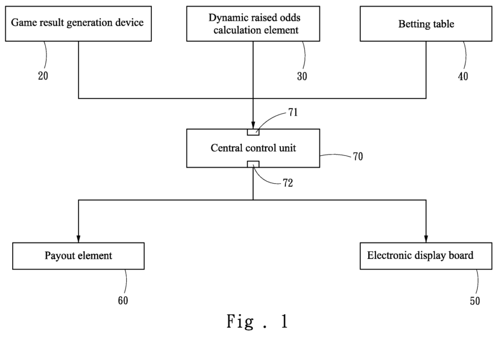 The invention refers to a gambling game system providing additional awards aims to increase the odds thereof. The gambling game system includes a central control unit to receive game results generated by a game result generation device, players’ betting received by a betting table and dynamic raised odds generated by a dynamic raised odds calculation element. After the betting is stopped in each round of game, the dynamic raised odds are output to an electronic display board to be displayed instantly and respectively on a plurality of display zones, and the game results, the players’ betting and the dynamic raised odds are transmitted to a payout element. The payout element pays out to the players who win the betting in one round of the game according to the payout odds or the dynamic raised odds which are at higher priority, so that the players can expect to get extra awards, and the appeal of the gambling game system is higher to further increase utilization of the gambling game system (cf. EP 2 899 701 A1, Abstract).