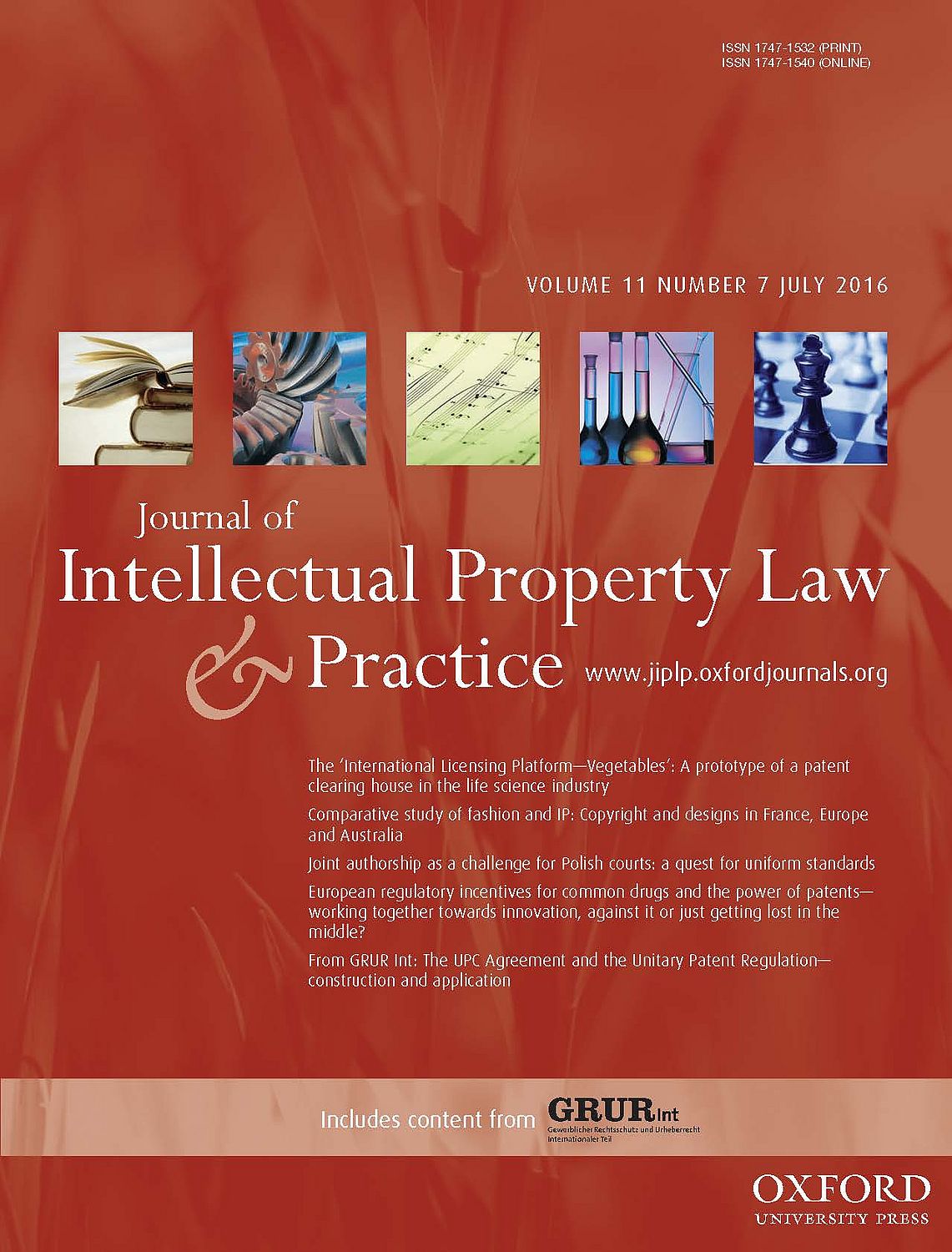 The article has been included in the paginated issue of the Journal of Intellectual Property Law and Practice (Volume 11, Issue 7, July 2016). To read it in full, please go to the original source here.